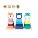Juguete educativo de madera, denominado 'Animal Towers' que permite trabajar la ordenación, la percepción de los colores y las formas.