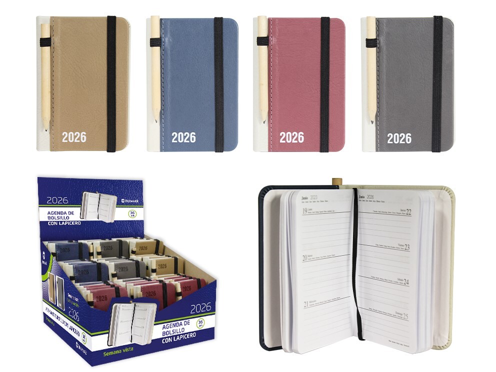 Agenda 2026 mini Pocket SEMANA VISTA con lapiz