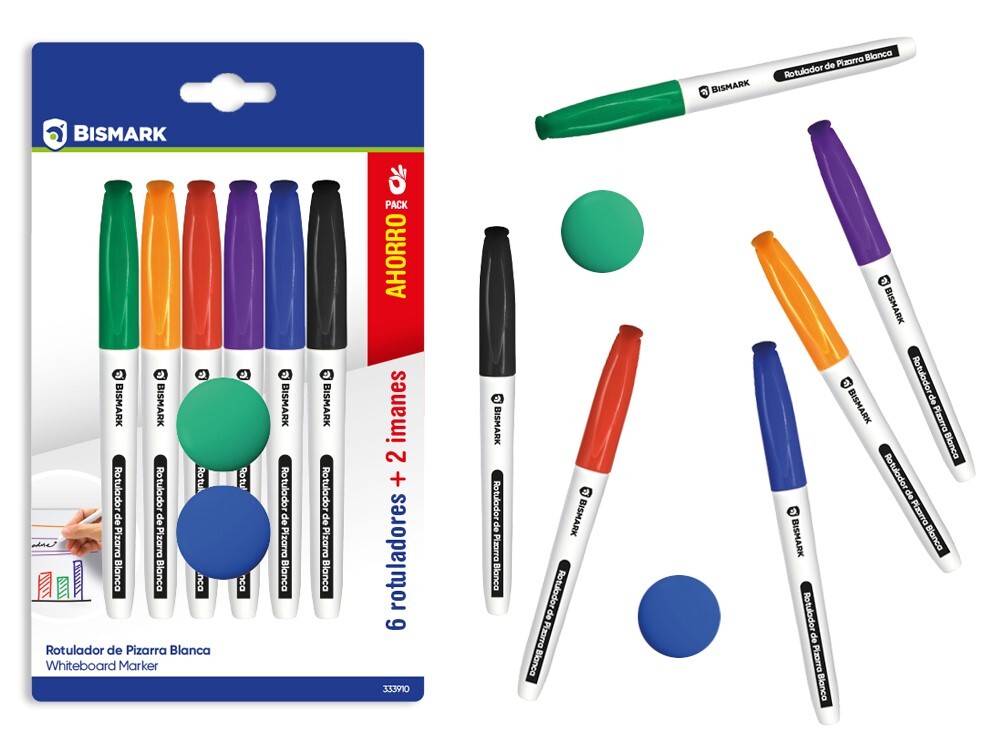 Rotulador pizarra 6 colores + 2 imanes Bismark