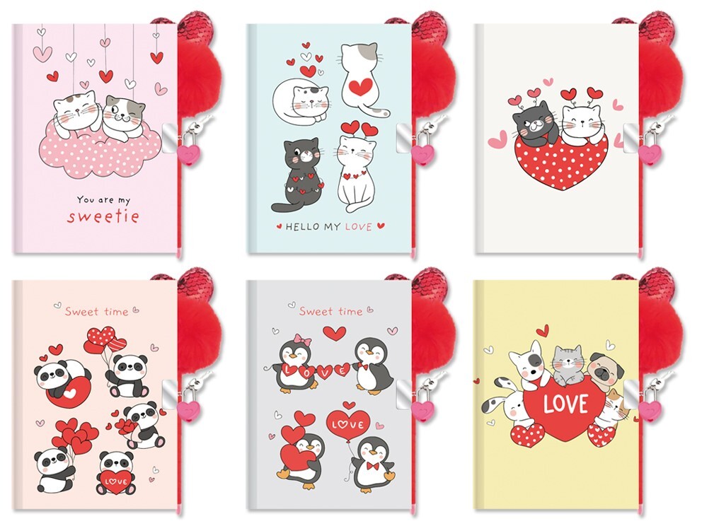 Diario con boligrafo Pompom love you